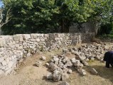 Restauration d'un mur de soutènement avec une partie supérieure séparative. Sur une longueur de 25 m environ et 1.10 m de hauteur en moyenne, coté ouest.
