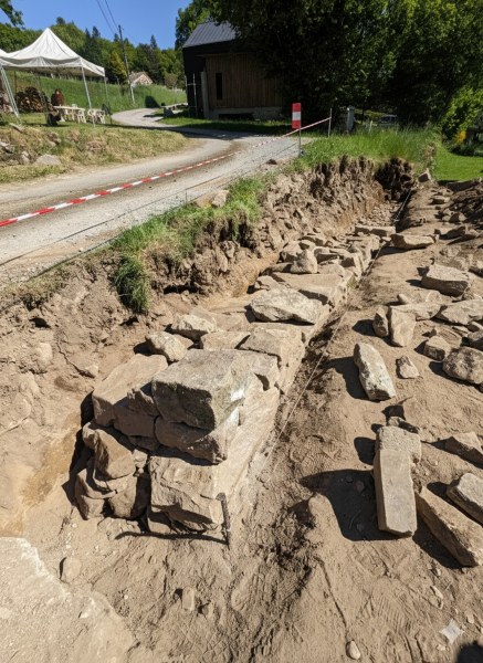 Début de restauration de ce bâti long de 12 m environ et 1,10 m de hauteur moyenne.